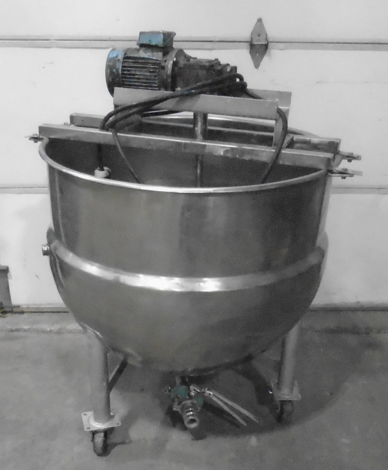 Qty 1. Used approx. 350 Litre (90 Gallon) Stainless Steel Steam Jacketed Kettle with Top Mounted Agitation, on Tri-legs and Wheels (ALLFAB Rated Manufacture Tag) They are 316 Stainless Steel and with Mixer Motors Electrics: 220 Volts Delivery Time: Immediate. We just had them Cleaned, Polished and Painted the legs. *Note: For additional cost our Technician can: add Variable Speed Controls or custom scrape agitation/paddles etc... Featured Location: Toronto | |